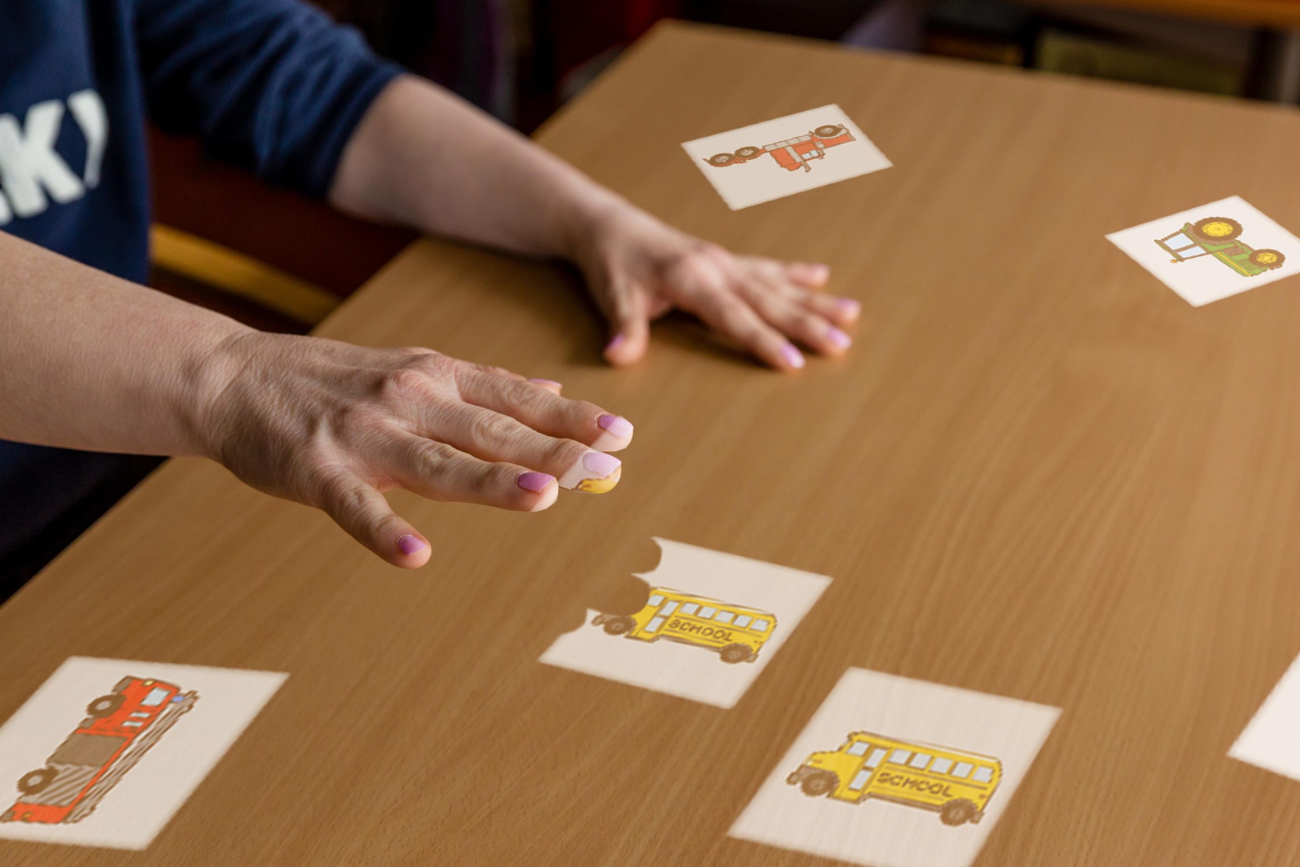 This game encourages observation, recognition and collaboration. An animal appears in the centre of the table. Together, the players look for the same vehicle between the pictures that move across the table. If the correct picture is on the other side of the table, they can point it out to a fellow player. It’s OK to make mistakes because they disappear until the matching pair is found, boosting self-confidence.