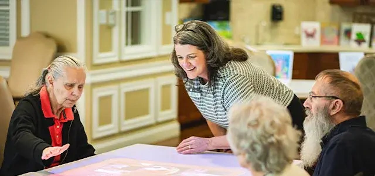 At Villa at Terracina Grand, a memory care community on the Terracina Senior Living in Naples, FL, the pursuit of joy, connection, and mental engagement is at the heart of everything we do. One of the most impactful ways we’ve enhanced the lives of memory care residents is through the innovative use of Tovertafel, an interactive gaming system specifically designed for people living with cognitive challenges such as dementia.